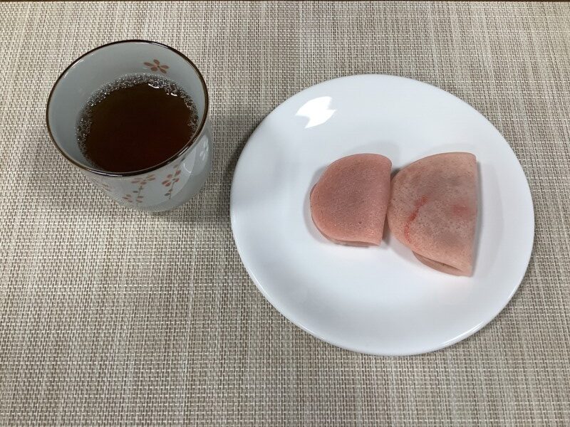 よくある桜もちでしたらこの後に桜の葉の塩漬けを巻くのですが、今回は桜の葉が手に入らなかったの残念ながら省略します。
