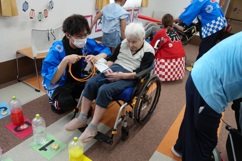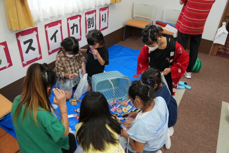 スイカ割り、輪投げゲーム、、釣りゲーム等々のお祭りならではのゲームを楽しんでいただきました(*^^*)